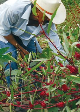 Las comunidades están profundamente involucradas y comprometidas con la protección de los ecosistemas, proceso en el que cabe mencionar la participación de Coinbio en el desarrollo comunitario. Cuentan con una organización –en tanto que ejido y como cooperativa- y han establecido grupos de vigilancia participativa para el manejo y protección de fuentes de agua; vegetación en áreas ribereñas; control territorial de la cacería y el saqueo de riquezas naturales como guano, madera, venado, paloma Huilota y el establecimiento de áreas de conservación. La jamaica es producida en 80 parcelas familiares de aproximadamente una hectárea y todo el proceso es manual, desde el barbecho hasta el empaque, pasando por la escarda, la cosecha, la limpieza de la flor. Una vez seleccionado el cáliz de la flor se extiende en camas para secarse al sol en condiciones naturales, durante dos o tres días, antes de ser empacada. Esta última etapa de la producción es realizada por una comisión de 23 mujeres de la cooperativa, mujeres e hijas de los ejidatarios. El color y sabor intensos de esta flor la han convertido en un ingrediente de predilección de los intérpretes de la cocina mexicana contemporánea. La nota de su presencia se advierte cada vez más en la elaboración de salsas, marinadas, jaleas y postres y desde luego, en la tradicional agua de jamaica en los hogares mexicanos. Ejido Oropeo Ramiro Chavez Collado / Atenedoro Vidales Hernández Andador Itzi 90 Col. Xangari 58089 Morelia, Michoacán t. (443) 334 58 15 cooperativaoropeo@yahoo.com |